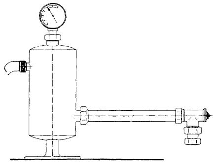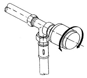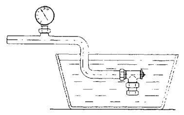 Испытание должно проводиться по схеме, указанной на рисунке 11. Терморегулятор должен быть закрыт со стороны радиатора и погружен в воду. Давление воздуха должно быть 0,02 МПа ± 10 %. Спустя одну минуту необходимо провернуть шток пять раз и проверить герметичность уплотнения штока клапана.