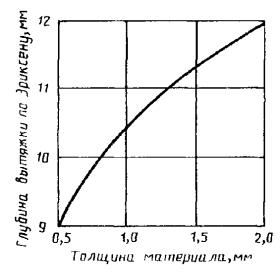 Максимальный размер зерен в стали этого типа соотнесен с показателем вытяжки по Эриксену и поэтому последний метод можно использовать для контрольных измерений без определения размера зерен. Минимальная вытяжка по Эриксену зависит от толщины пластинки, как указано на чертеже.