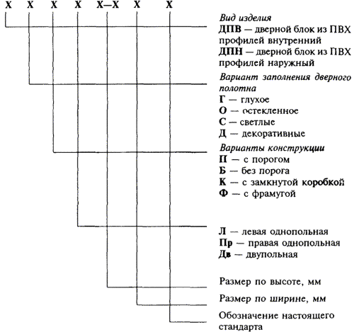 3.2 Для дверных блоков принимают следующую схему структурного обозначения:
