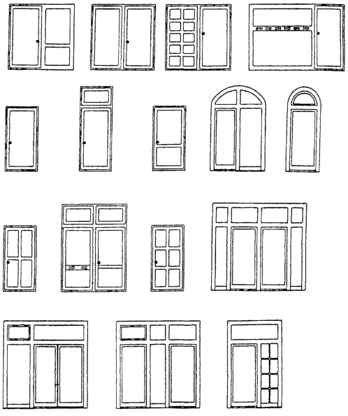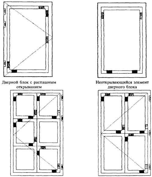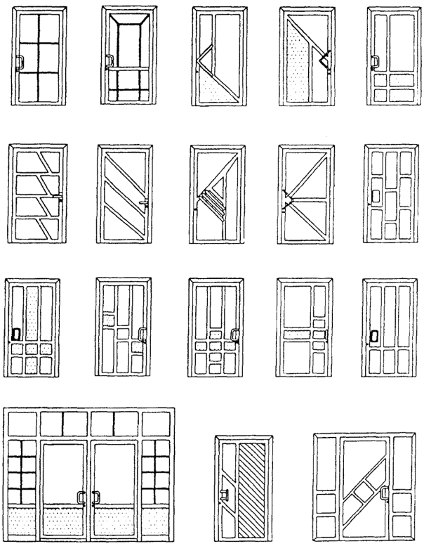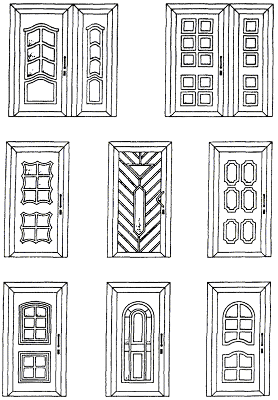 Примеры архитектурных рисунков и конструктивных решений основных узлов соединений полотен и коробок дверных блоков различных конструкций приведены на рисунках 1-7 и в приложении Б.