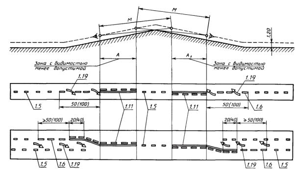 2. Под расстоянием видимости подразумевается расстояние, на котором с высоты 1,2 м (уровень глаз водителя легкового автомобиля) можно увидеть предмет, находящийся на высоте 1,2 м над уровнем проезжей части.