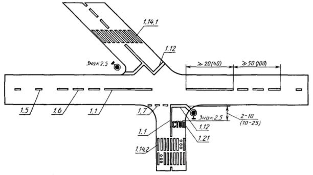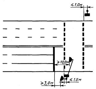 Если дорога проходит параллельно трамвайным путям на расстоянии менее 20 м, то знак 1.5 с табличкой 7.1.3 или 7.1.4 должен быть установлен перед пересечением с дорогой, ведущей в сторону трамвайных путей, на расстоянии 50 м от пересечения.