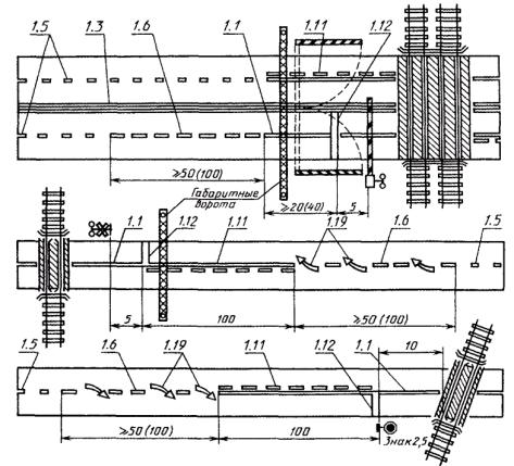 2.2.5. Знаки 1.1 «Железнодорожный переезд со шлагбаумом» и 1.2 «Железнодорожный переезд без шлагбаума» должны устанавливаться перед всеми железнодорожными переездами, соответственно оборудованными или необорудованными шлагбаумами.