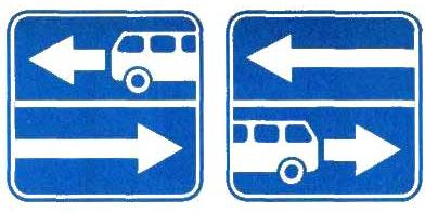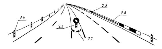 2.1.6. Дорожные знаки, кроме случаев, специально оговоренных настоящим стандартом, должны устанавливаться с правой стороны дороги вне проезжей части и обочины. На дорогах с двумя и более полосами для движения в одном направлении знаки с учетом характера содержащейся на них информации и местных условий должны дублироваться, если они могут быть своевременно не замечены водителями из-за крупногабаритных транспортных средств, движущихся по правым полосам проезжей части. Дублирующие знаки должны устанавливаться на разделительной полосе, а при ее отсутствии - на левой стороне дороги, если для движения во встречном направлении имеется не более двух полос, или над проезжей частью, если не обеспечивается видимость знака, установленного на левой стороне дороги, а также, если для движения во встречном направлении имеется три полосы и более.