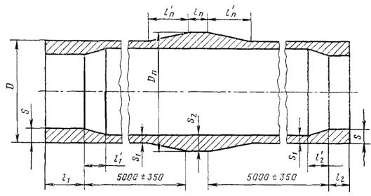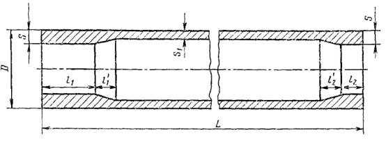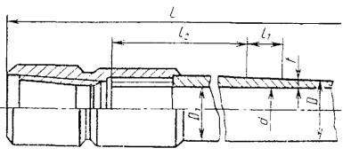 2.1. Размеры труб с внутренними концевыми утолщениями, изготовляемых без резьбы, и предельные отклонения по ним должны соответствовать указанным на черт. 1 и в табл. 1.