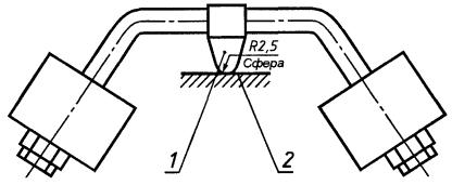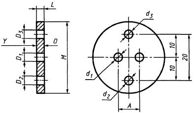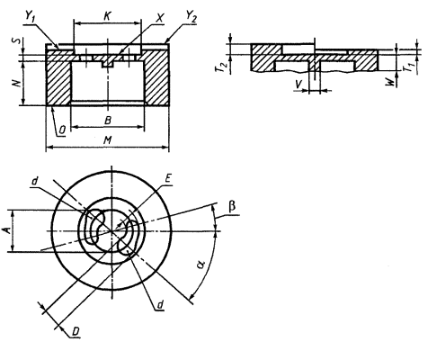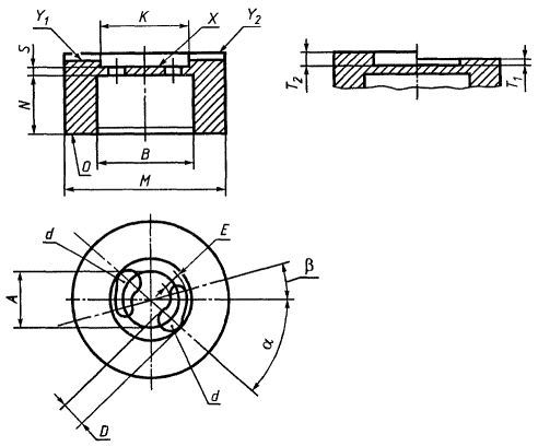 Испытание. Стартер должен входить в калибр со стороны поверхности О до тех пор, пока головки штырьков не пройдут через отверстия d. Затем стартер поворачивают на 45° и устанавливают таким образом, чтобы головки штырьков соприкасались с поверхностью X. В этом положении крайние части головок штырьков не должны быть ниже поверхности Y1 и выступать за поверхность Y2.