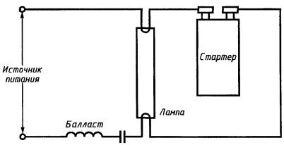 При этом испытании стартеры соединяют с деактивированной лампой наименьшей мощности, маркированной на стартере, и соответствующим балластом. При расчетной мощности 22 Вт и менее балласт должен быть индуктивного типа, при большей мощности - емкостного типа.