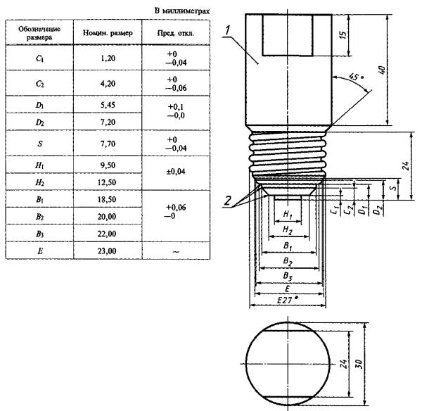 * Размеры резьбы испытательного цоколя В должны иметь минимальные значения с допуском ± 0,05 мм, указанные в стандартном листе 7004-24 МЭК 60061-1.