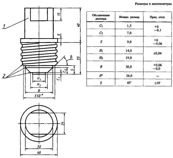 В корпусе патронов Е40 размеры S и Е предназначены только для предельных калибров.