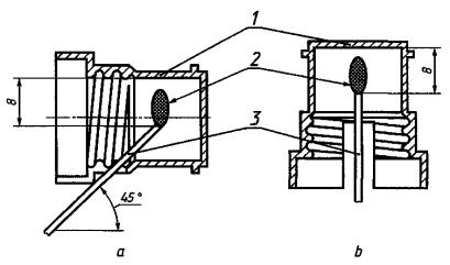 Рисунок b показывает, как проводить испытание игольчатым пламенем центральной контактной поверхности.