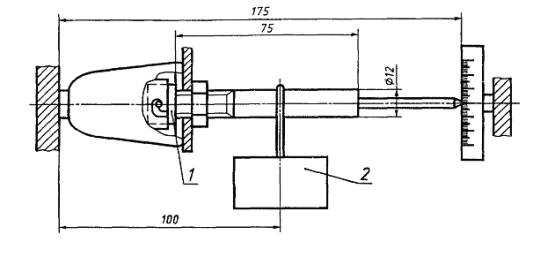 1 - испытуемый патрон; 2 - опорное устройство