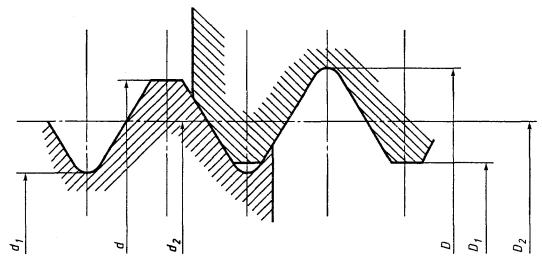 Рисунок 13 - Резьба ниппеля патронов. Базовый профиль и предельные профили винта и гайки.