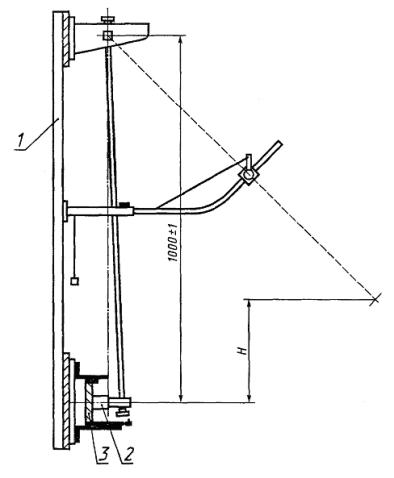 1 - стена; 2 - образец; 3 - опорное приспособление; Н - высота падения