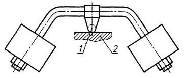 1 - стальной шарик диаметром 5 мм; 2 - образец