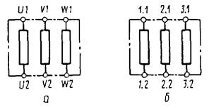 1) перед цифрами по п. 4.4 помещают буквы (например, U, V, W) в соответствии с фазами трехфазной системы (черт. 3а);