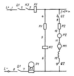 5.3. Участки цепи, разделенные контактами аппаратов, обмотками машин, резисторами и другими элементами, должны иметь разное обозначение.