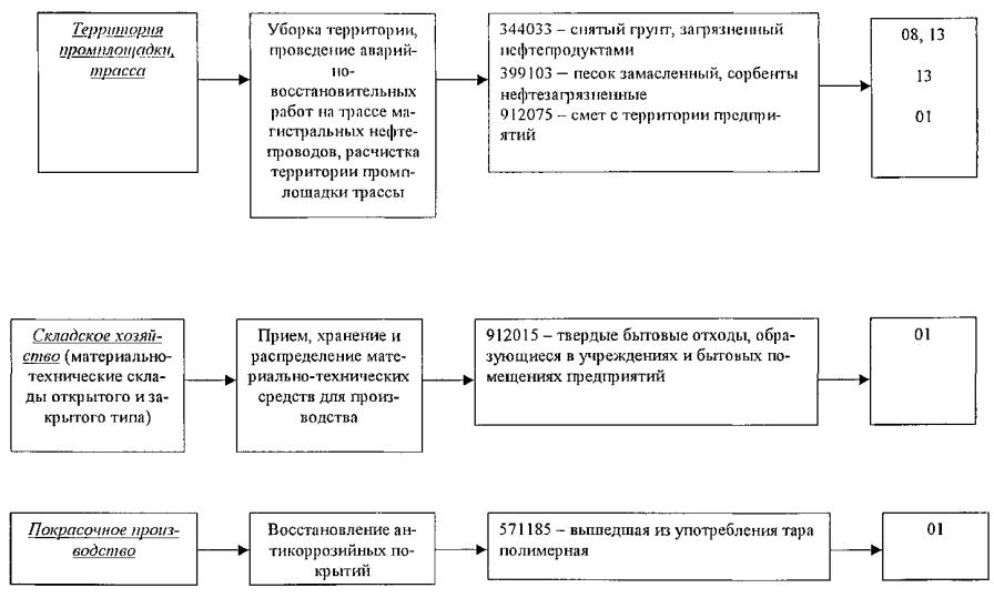 Такое группирование отходов целесообразно осуществлять при разработке Проектов нормативов образования и лимитов на размещение отходов для конкретных подразделений ОАО «АК «Транснефть». Номенклатура отходов при этом уточняется и конкретизируется исходя из условий и объемов их образования, сбора, использования и размещения.