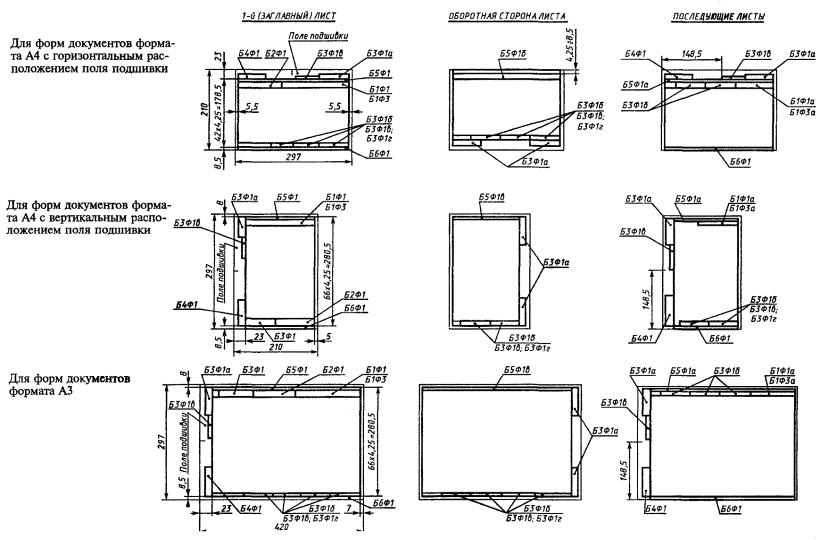 - не указывать блок Б3 на поле подшивки, если он указан в нижней части формы (для форматов А4 и A3) или в верхней части формы (для формата A3);