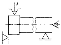 3. В трехкулачковом патроне с механическим устройством зажима, с упором в торец, с поджимом вращающимся центром и с креплением в подвижном люнете |