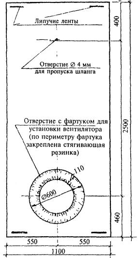 воздухонепроницаемую раздвижную дверь (раму) с отверстием для вентилятора, устанавливаемую в проем ограждения испытываемого объекта (рисунки 1, 2); допускается иное конструктивное исполнение раздвижной двери;