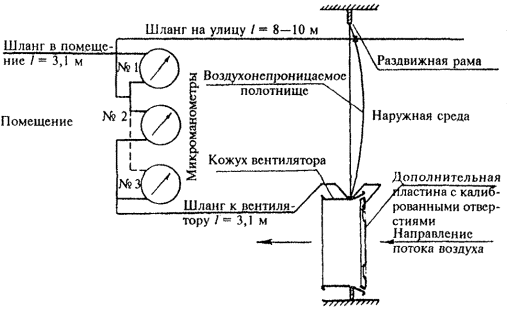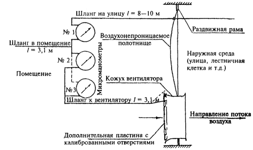 6.1 Установка для определения воздухопроницаемости помещений должна включать следующий набор оборудования и контрольно-измерительных приборов: