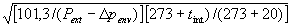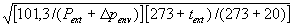 9.3 Измеренный объемный расход воздуха корректируют на стандартные атмосферные условия: Р = 101,3 кПа, tint = 20 °С = 293 К и определяют объемный расход воздуха Qenv, м3/ч, через ограждающие конструкции по формуле