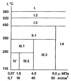 Примечание. Если значения параметров среды находятся в разных категориях, то трубопровод следует отнести к категории, соответствующей максимальному значению параметра среды (см. схему).