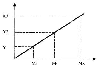 М - масса отходов, определяемая по графику продолжением линии регрессии до ее пересечения с прямой, параллельной оси абсцисс и проходящей через точку Y = 0,3.