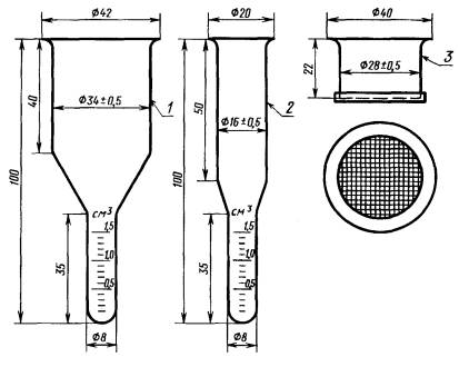 1 - большая пробирка; 2 - малая пробирка; 3 - стакан с ситом