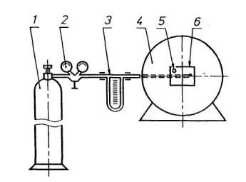 Для проведения испытания собирают установку по схеме, изображенной на рисунке.
