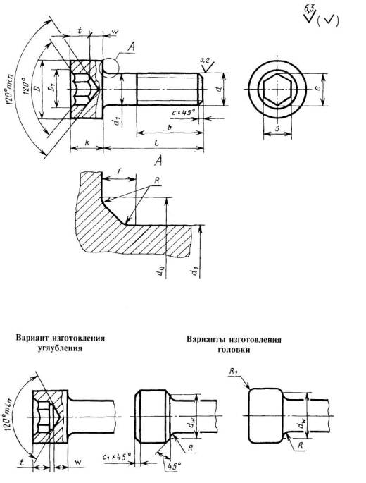 Стандарт соответствует международному стандарту ИСО 4762-77, за исключением предельных отклонений размера под ключ.