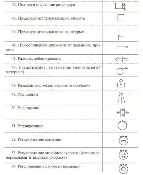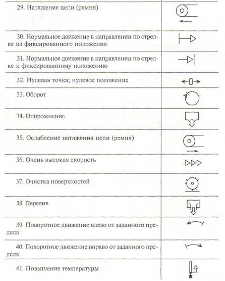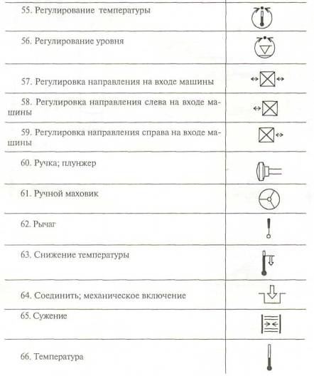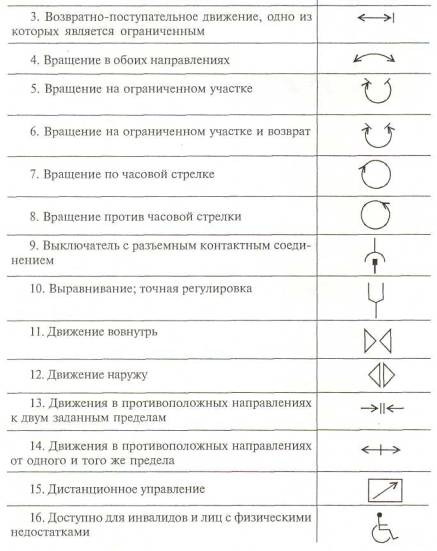 Дополнительные символы, применяемые для обозначения органов управления производственным оборудованием, и их смысловые значения – по [1]