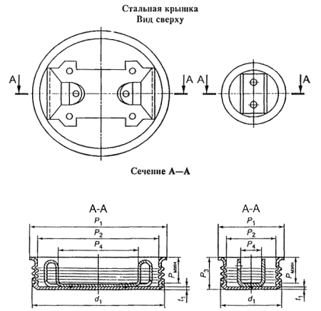 Примечание. Крышку изготавливают из стали марок 08пс, 08кп, 10кп и БСт2пс по ГОСТ 16523 или других материалов, аналогичных указанным по химическим и физическим свойствам, прокладка крышки - из эластомера или термопласта.