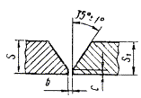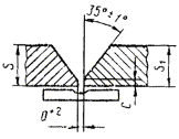 7. В стыковых соединениях без скоса кромок деталей толщиной свыше 6 мм при сварке неплавящимся электродом с присадочным металлом для обеспечения направленности его подачи в сварочную ванну разрешается снимать фаску с верхних кромок деталей размером 1,0 - 1,5 мм ´ 45°.