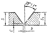 12. Для стыковых соединений допускается уменьшение размера с до (2±1) мм, для тавровых и угловых соединений до 1+1 мм.