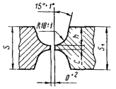 При этом конструктивные элементы подготовленных кромок и размеры сварного шва следует выбирать по меньшей толщине.