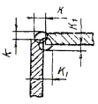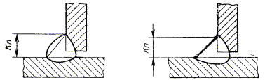 Примечание. Катетом Кп, определяемым при проектировании, является катет наибольшего прямоугольного треугольника, вписанного во внешнюю часть углового шва. При симметричном шве за катет Кп принимается любой из равных катетов, при несимметричном шве - меньший.