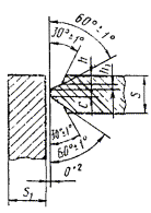 При разности в толщине свариваемых деталей свыше значений, указанных в табл. 52, на детали, имеющей большую толщину s1, должен быть сделан скос с одной или двух сторон до толщины тонкой детали s, как указано на черт. 2, 3 и 4.