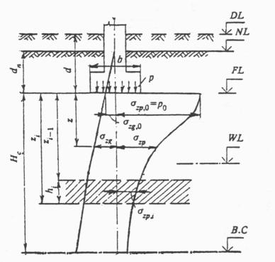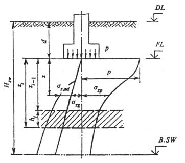 szp - то же, дополнительное от внешней нагрузки (давления фундамента);