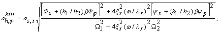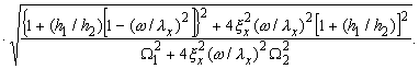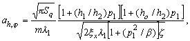 1. Амплитуду горизонтально-вращательных колебаний верхней грани фундамента-приемника при кинематическом возбуждении от одного фундамента-источника следует определять по формуле