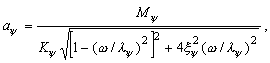 ах,ay - амплитуды соответственно горизонтальных колебаний верхней части фундамента, м, и вращательных колебаний относительно вертикальной оси, проходящей через центр тяжести верхней части фундамента, рад, определяемые по формулам