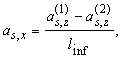 где а(1)s,z, а(2)s,z - амплитуды вертикальных колебаний поверхности грунта в точках, соответствующим крайним точкам стороны фундамента-приемника linf от вертикальных колебаний фундамента источника, определяемые в соответствии с указаниями п. 1.31;