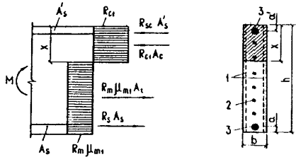 стержневой арматуры на единицу ширины соответственно в сжатой и растянутой
