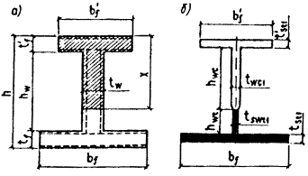 tf, tf - толщина соответственно сжатой и растянутой полок двутаврового сечения;