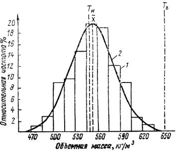 На гистограмме отмечаются также границы поля допусков Тн и Тв.