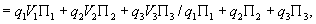 где q1,q2,q3 - расход воды на разработку и гидротранспортирование соответственно 1 м3 грунта III, V и VI групп плюс 0,65 - величина, характеризующая содержание твердых частиц в 1 м3 грунта естественной плотности (в карьере); П1, П2, П3 - процентное содержание грунта III, V и VI групп в забое; V1, V2, V3 - норма выработки земснаряда типа ЗГМ-350 при разработке на III, V и VI групп грунта, принимаемая по § Е2-2-2 настоящего выпуска.