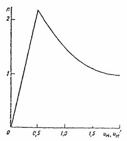 Коэффициент n определяется в зависимости от f по рис. 2.1 или по формулам: