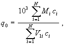 1.4. При одновременном совместном присутствии в атмосферном воздухе нескольких (n) веществ, обладающих в соответствии с перечнем, утвержденным Минздравом СССР, суммацией вредного действия, для каждой группы указанных веществ однонаправленного вредного действия рассчитывается безразмерная суммарная концентрация q или значения концентрации n вредных веществ, обладающих суммацией вредного действия, приводятся условно к значению концентрации с одного из них.