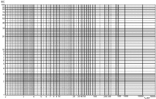 Парные величины слоев осадков из ранжированных выборок и их эмпирических повторяемостей наносят на спрямляющие клетчатки (рис. 7 и 8 приложения 5). На спрямляющих клетчатках проводят по нанесенным точкам прямые и по ним экстраполируют или интерполируют слой осадков до расчетных значений Т.