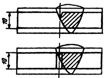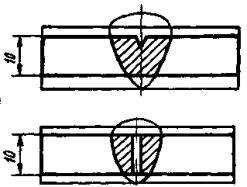 непровары в корне шва стыковых сварных соединений с односторонней разделкой кромок, выполненных без подкладок, а также угловых и тавровых сварных соединений, выполненных с разделкой кромок |